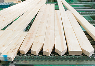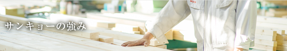 一般的に流通している木材の品質では、すべてのお客様のニーズを満たすことはできません。そこでサンキョーでは、お客様の用途に合わせて商品を選別。均一でない木材の判定は熟練技術者による「人の眼」で行うことでより高品質を維持しています。
